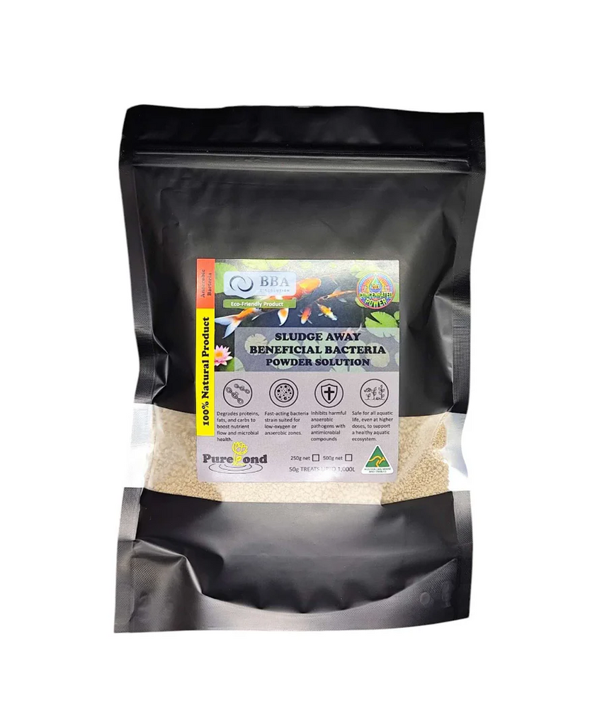 Sludge Away is a specialised beneficial bacteria product developed for use in anaerobic or low-oxygen environments, such as pond bottoms and sediment-rich water bodies. The strain, BBA AnaeroPro-411, was carefully selected and adapted for its rapid colonisation, efficient organic matter degradation, and its ability to restore ecological balance in sludge-prone conditions.